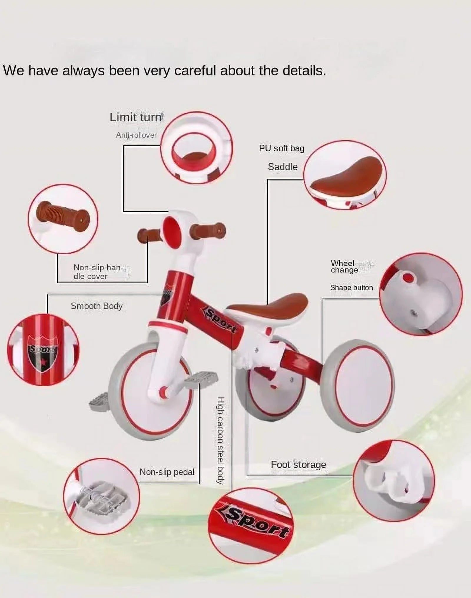 3 in 1 Tricycle . Toddler Tricycle with Sliding for Boys and Girls in different Colors.