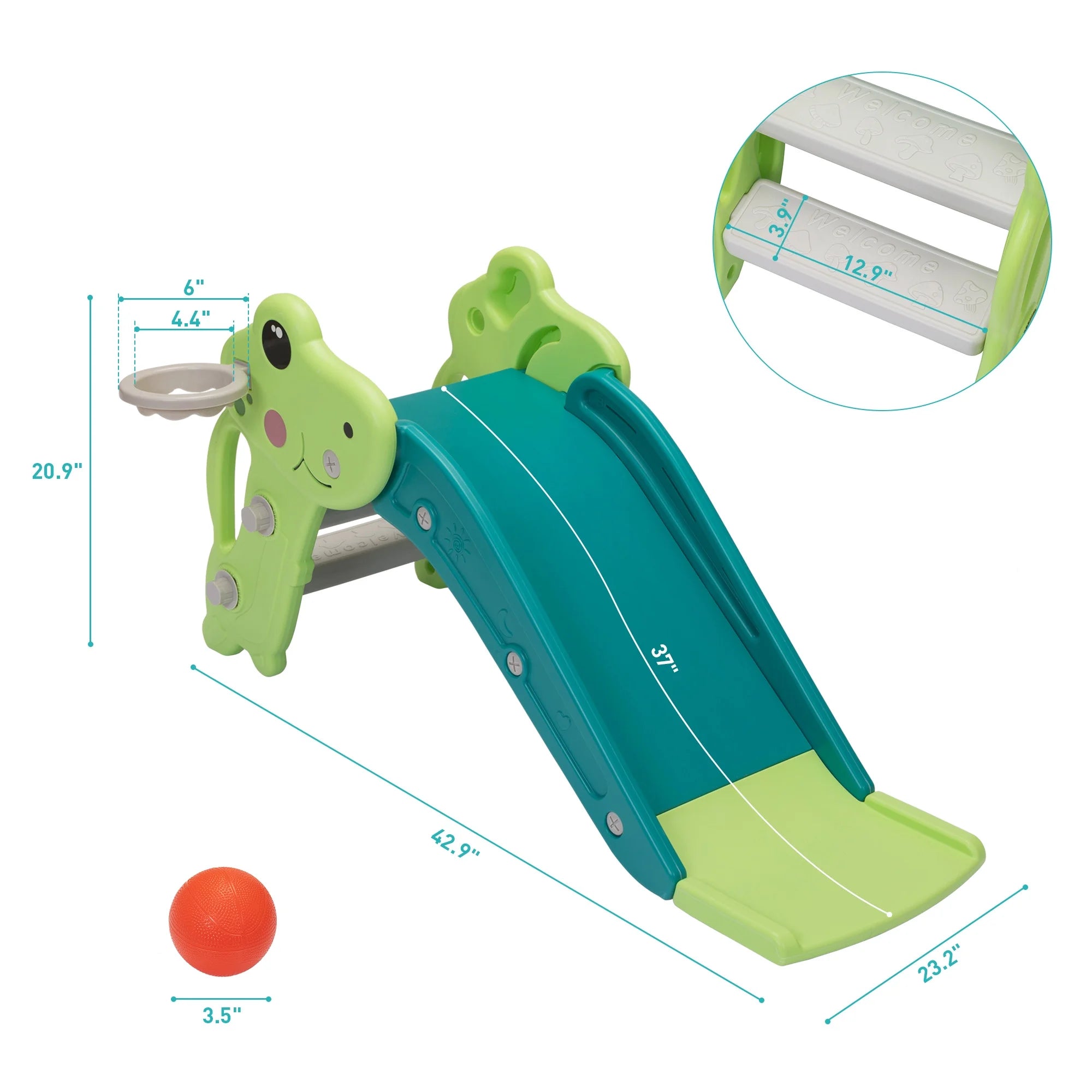 - ??Multi-purpose Kids Slide??: With a cute appearance . this pretty kids slide can be placed indoors and outdoors. Your children can enjoy themselves sliding or shooting basketball.