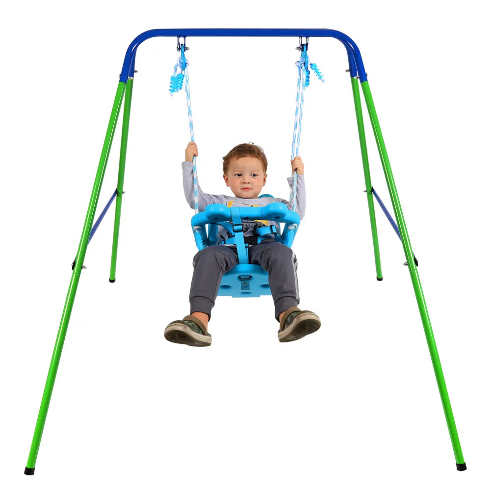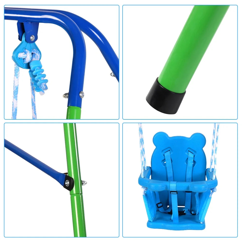 • Toddler Swing Set Folding Metal Swing Set with Safety Seat for Baby Chirldren Gifts Sturdy Metal Swing Stand Safety Belt Indoor Outdoor Infant Swing for Toddlers Age 9-36 Months ChYoung