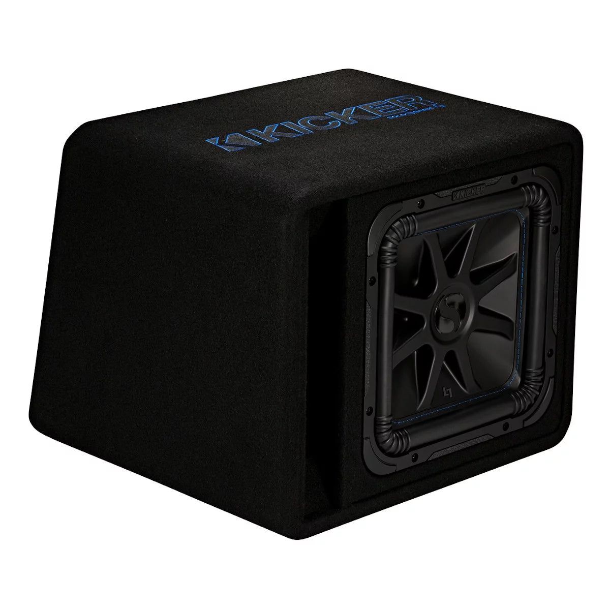 Put more bass in less space in your vehicle without the need for a costly custom box thanks to the Kicker 12 Inch 1500 Watt Single Loaded Solo Baric L7S Subwoofer Enclosure.This robust subwoofer box features durable MDF construction with thick black carpeting . strong bracing . and rounded corners. It comes loaded with a Solo Baric L7S 12 inch subwoofer and delivers unbeatable bass with its ported design . 2 ohm voice coils . and 750 watts of RMS power. This subwoofer set includes 1 loaded enclosure . a 12 inch subwoofer . mounting hardware . and owner’s manual.Best of all . this box makes wiring and installation a snap . so you’re only a hop and a skip away from serious bass in your car.