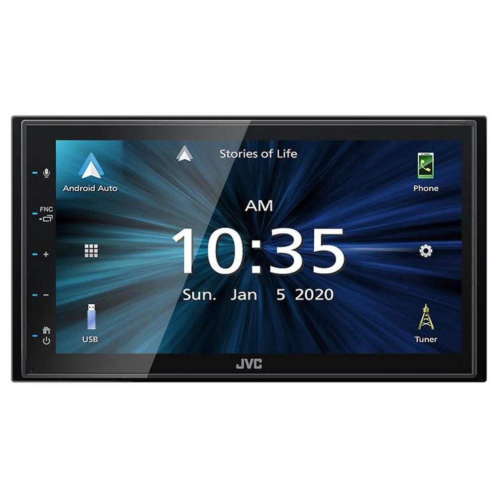 New JVC KW-M560BT 6.8″ Digital Multimedia Receiver (Does not play CDs) with SiriusXM TunerJVC’s KW-M560BT multimedia receiver puts all the goodness front and center on a 6.8″ touchscreen display with Android Auto and Apple CarPlay. Plus . you’ll get a variety of music sources . hands-free calling . serious sound-shaping tools . and plenty of outputs for aftermarket amps and subs.Include Package: SiriusXM Tuner and EarbudsProduct Highlights: