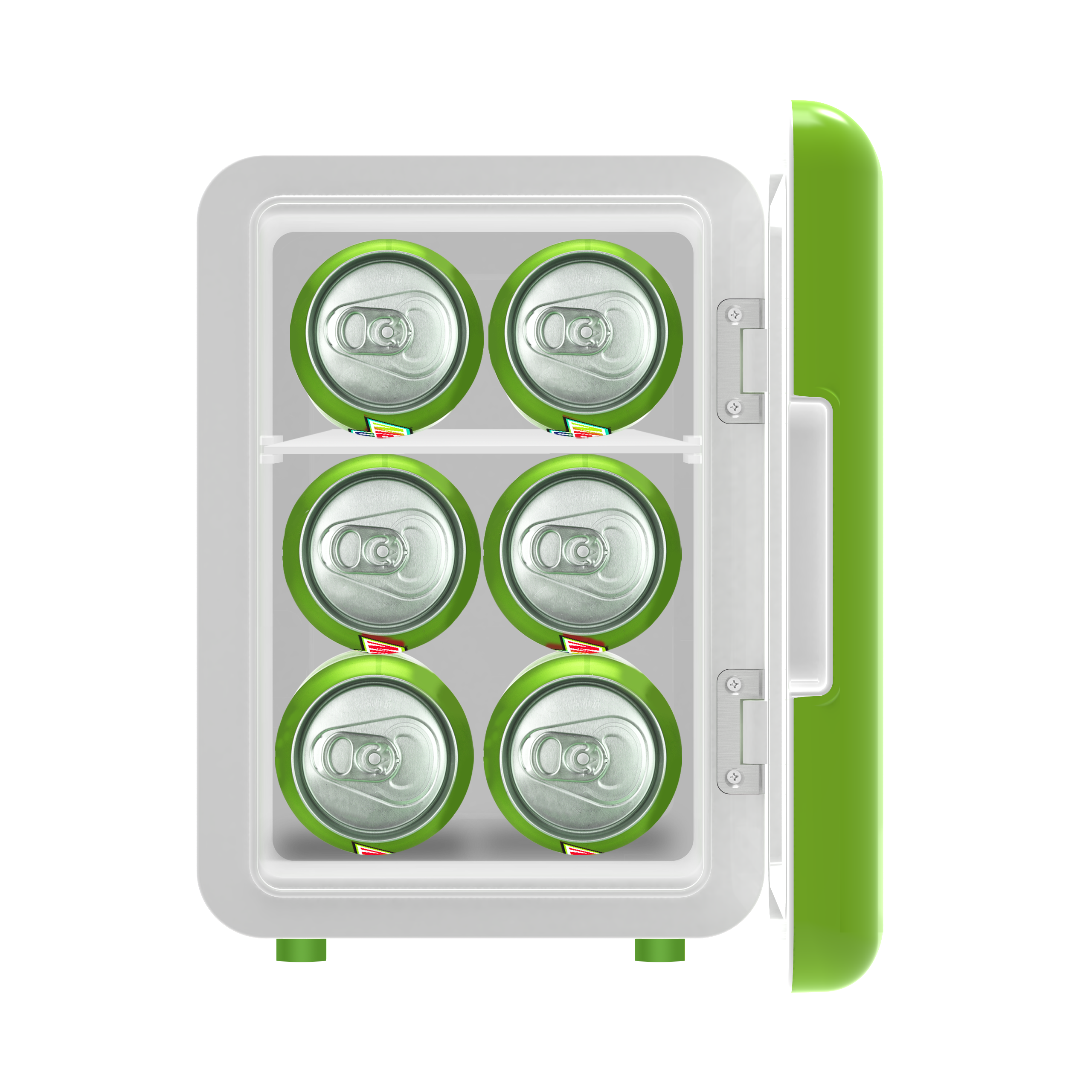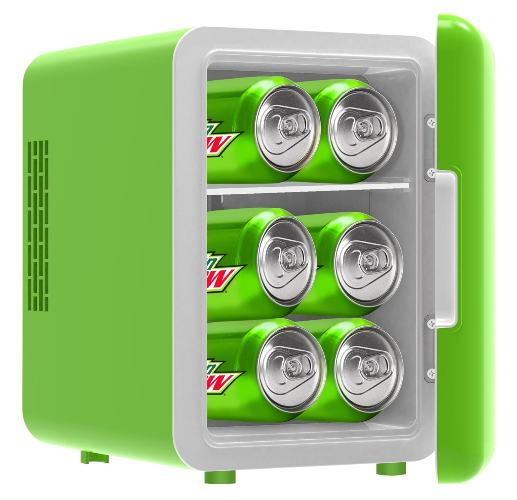 Mini fridge, maximum chill. The portable personal fridge keeps your food and drinks at the perfect temperature. The ultimate versatile cooler, this mini fridge is perfect for all food and drinks. Cools up to 20 degrees Fahrenheit below ambient temperature. Compact space saving design and lightweight features make it easy to take with you anywhere, yet can still fit your needs; 4 Liter capacity chills six 12 ounce cans, while a removable shelf makes it easy to store milk, juice, yogurt, bottles, smoothies, cheese, fruit, coffee, soup, and more. Perfect for personal spaces, bedrooms, offices, hotels, boats, soccer games, sporting events, backyard BBQ's, pool parties and more! Conveniently plugs into standard home outlets. Approved with advanced safety technology for long-lasting durability.