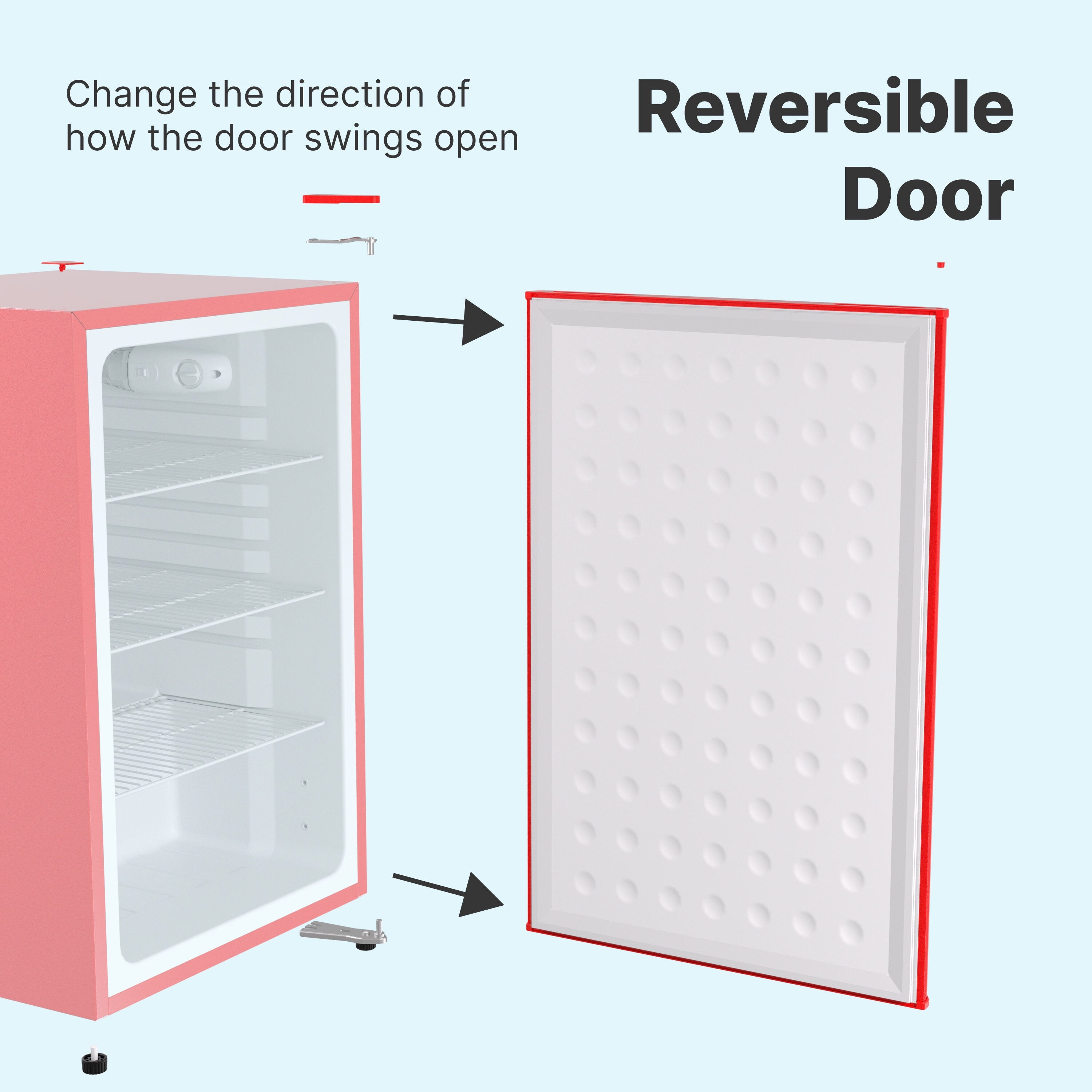Introducing the SnowLion 122L Solid Door 4.3 C.ft. Freestanding Under-Counter Mini Fridge, a great solution for any home or office! This under-counter mini fridge offers an impressive capacity of 4.3 cu ft/ 122 Liters/ 174 Cans/ 116 Bottles, making it the perfect size to store all of your favorite beverages and snacks. Its reversible door allows you to open it from either the left or right side, while its adjustable feet keep it stable no matter where you place it. Temperature is easily adjustable between 32-50 degrees Fahrenheit with a low noise level at 40dB. The refrigerator also features three full size and one half size adjustable wire shelf as well as one wine bracket for even more storage options. On the inside, an LED bulb provides illumination for better visibility. The energy efficient and well-insulated design results in a total annual energy consumption of only 205Kwh. With its solid door and modern design, this mini fridge will look great in any setting.