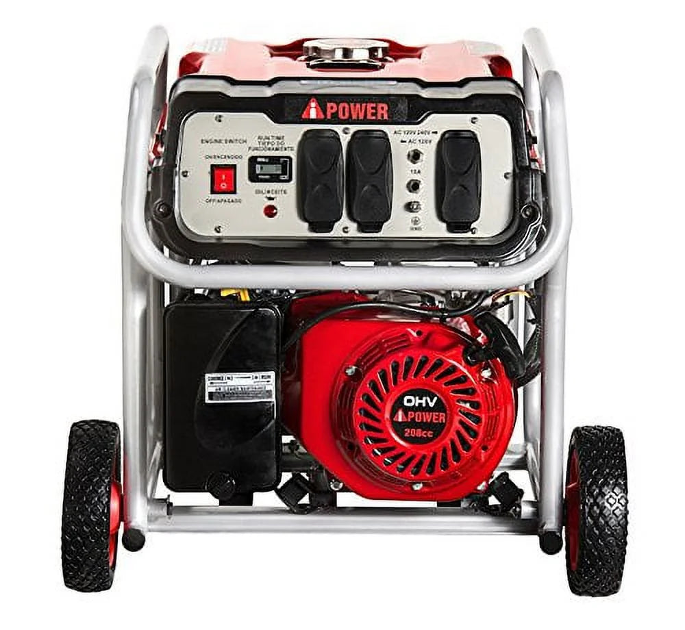 The A-iPower Model SUA4500 4500W Generator is powered by a reliable 208cc/7HP single cylinder . four-stroke OHV engine and coupled by high quality alternator. This unit produces 3500 running watts and 4000 surge/starting watts with a 68dB sound rating from 23 feet to ensure low noise for quiet operation. The alternator produces more surge wattage to start motor-driven appliances and tools. With a four-gallon rigid steel fuel tank with built-in fuel gauge . this unit can run up to 13 hours at 50 percent load. The low oil shut-off sensor equipped on the engine is designed to protect the engine for long life and easy maintenance. The easy-to-reach integrated control panel makes the unit user-friendly.