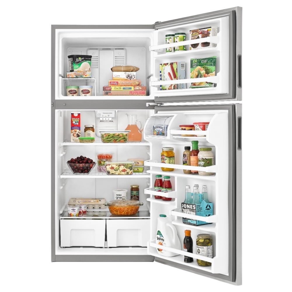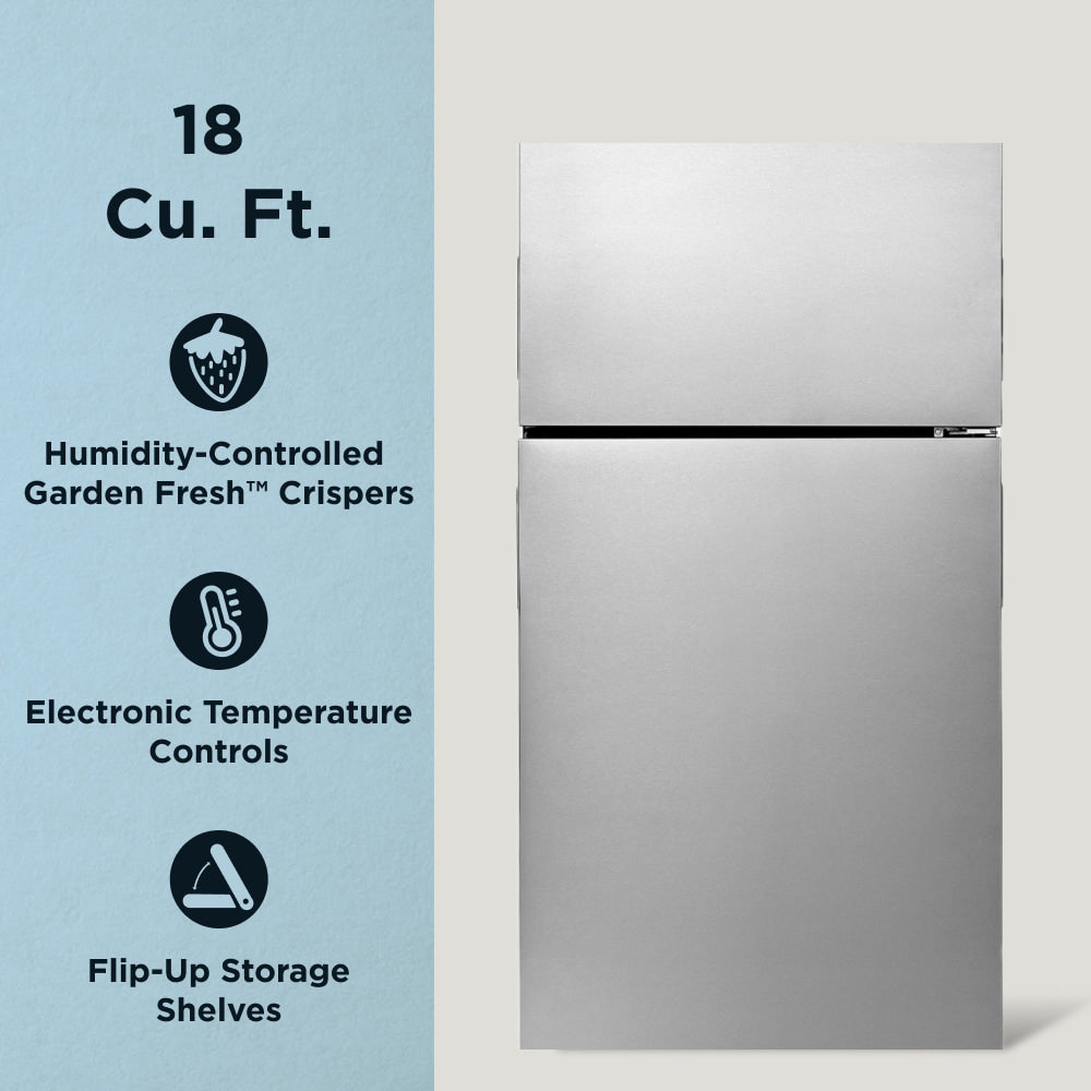Experience the benefit of Garden Fresh™ Crisper Bins. This Amana® Top- Freezer Refrigerator comes with humidity-controlled, Garden Fresh™ Crisper Bins that help greens stay green, so you can spend less time doing grocery runs. Plus, you can fill your fridge just how you like it with the Gallon Door Storage Bins and the adjustable Flip-Up Storage Shelf.