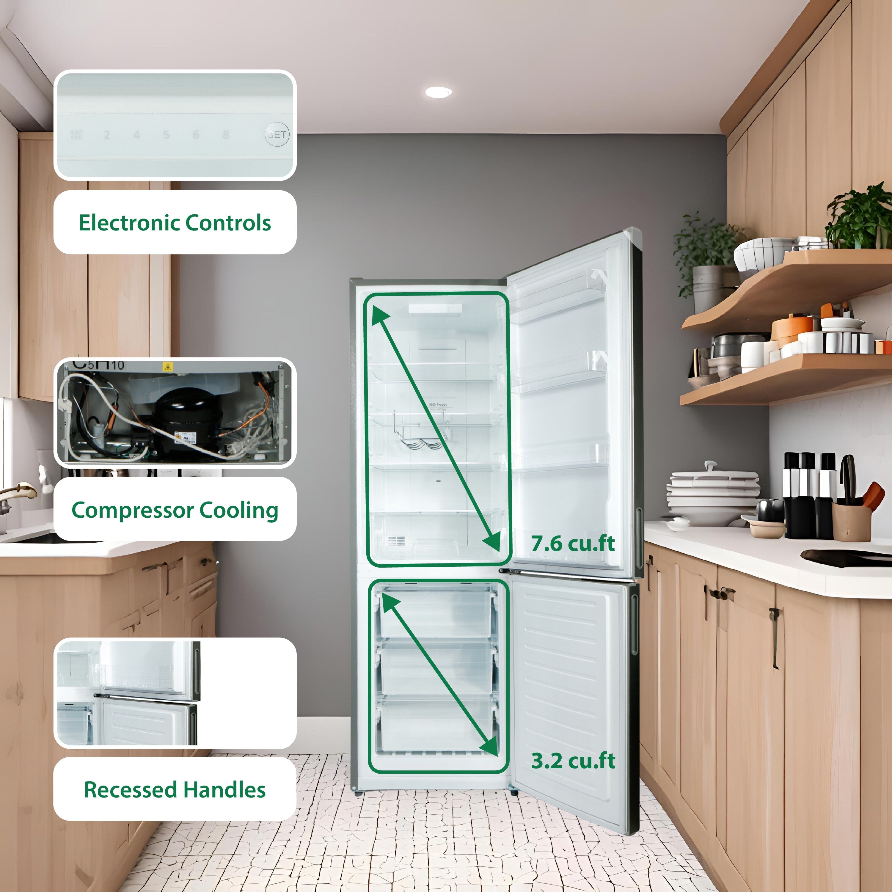 BOTTOM FREEZER - The bottom freezer with 3 convenient drawers allows you to easily organize and access frozen items , closed back panel can go flush against the walls to save space..