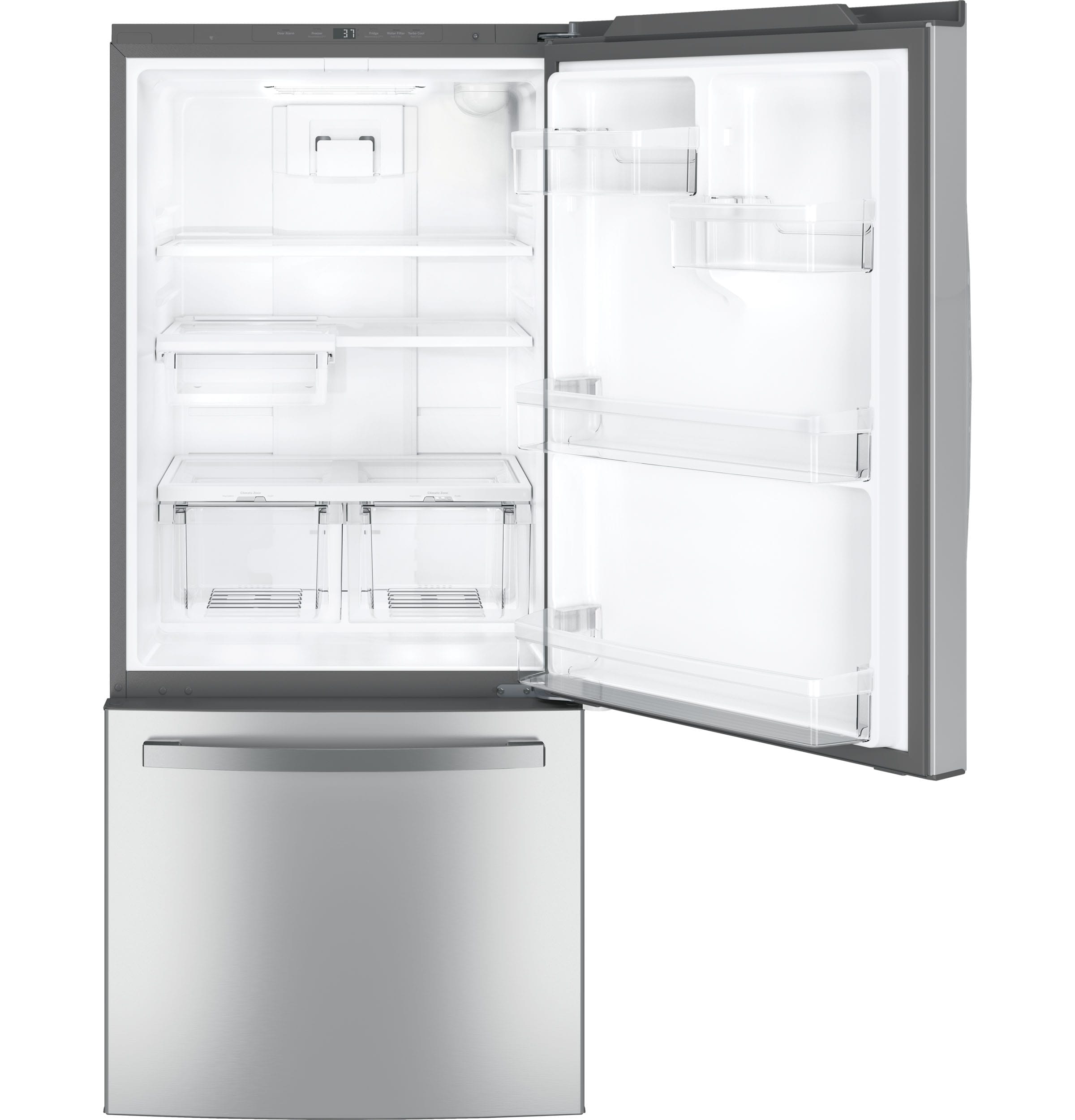 • GE 20.9-cu ft Standard-Depth Bottom-Freezer Refrigerator with Ice Maker ( Stainless steel ) ENERGY STAR Certified