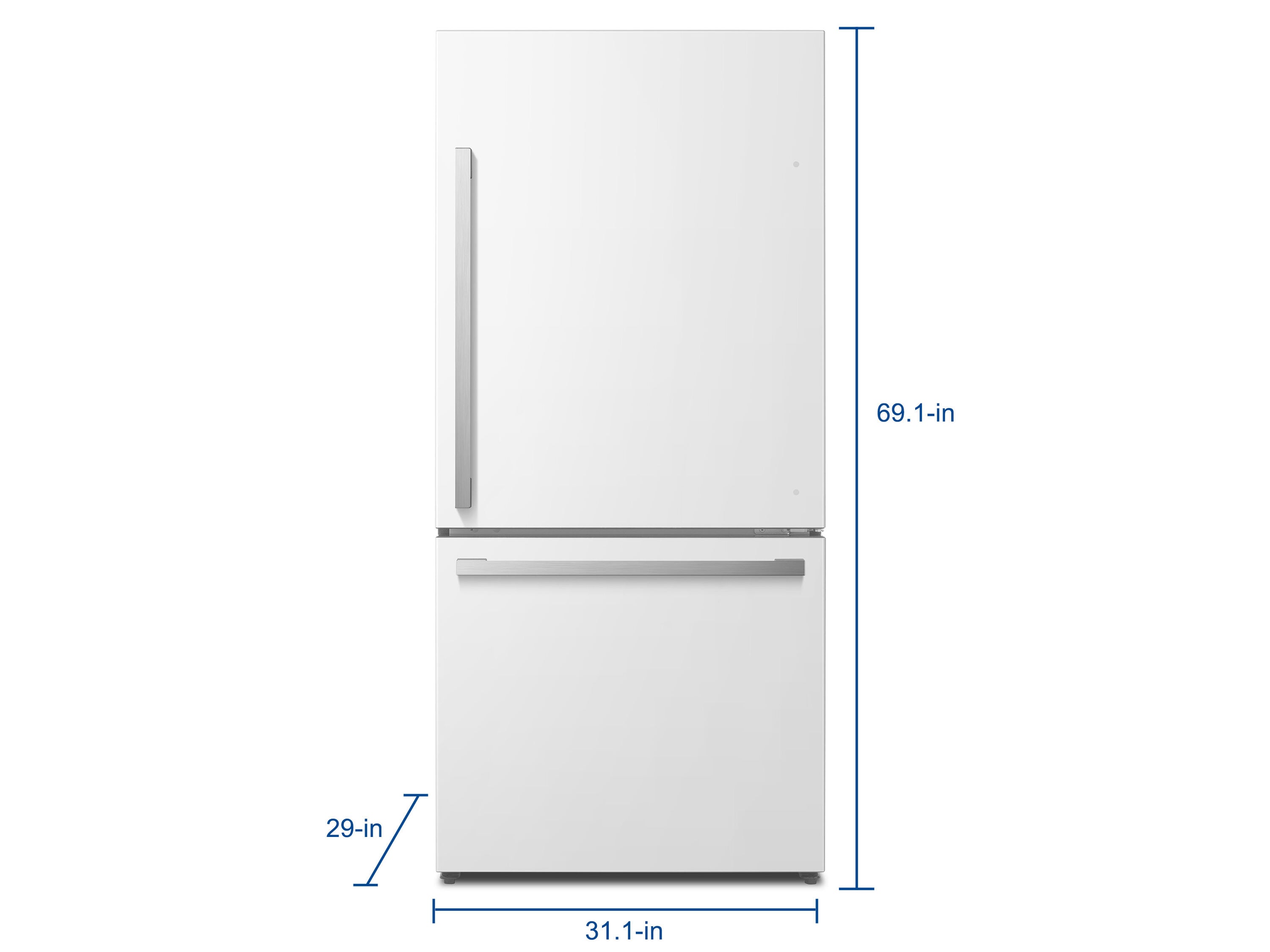 With its modern clean design, the Hisense HRB171N6AWE is slim enough to fit 33" width spaces and give any kitchen a more premium look. The counter-depth design provides a sleek built-in feel. Gallon door storage keeps frequently used items within easy reach. LED lighting helps you find what you're looking for. Two full-width freezer drawers make it easy to organize food.