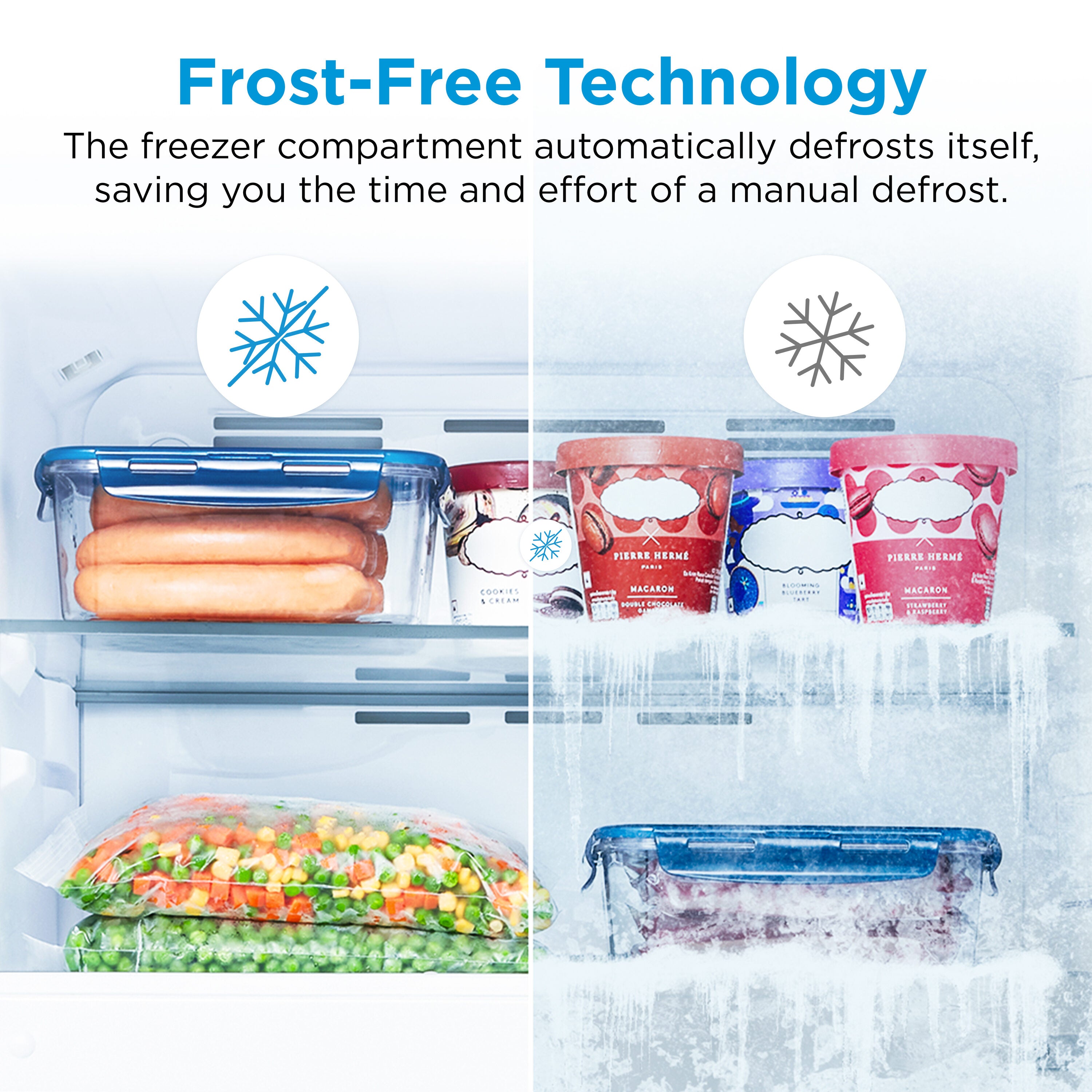 Frost-Free Technology: The freezer compartment automatically defrosts itself, saving you the time and effort of a manual defrost.