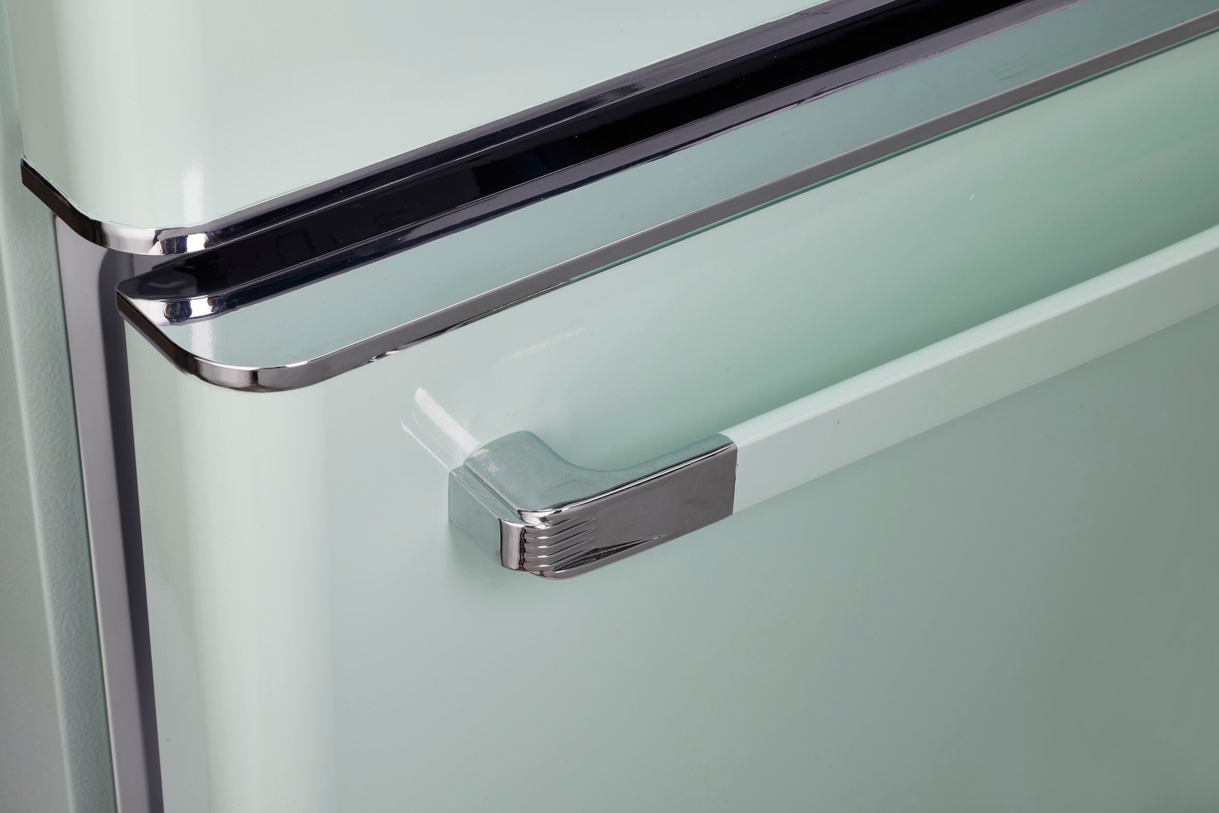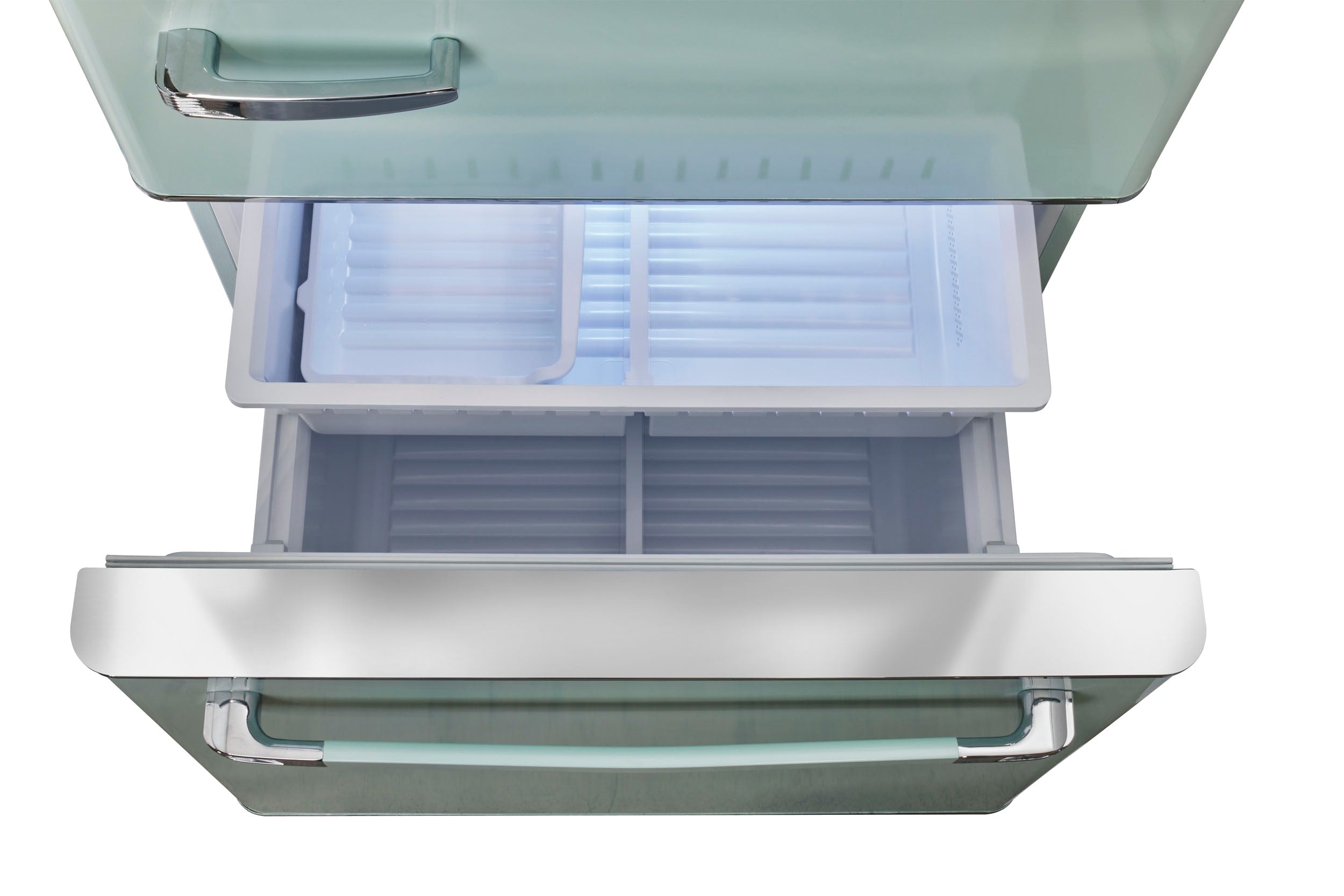 The 18 cu. Ft. Classic Retro counter-depth bottom mount refrigerator is the perfect family sized refrigerator with ample space to keep all your fresh and frozen foods, packaged in an eye-catching throwback design. This refrigerator is energy star certified for energy efficiency all year-round, designed for optimal energy savings and easy, dependable use. Its frost-free design allows easy cleaning without dealing with frost buildup. It also comes with a built-in icemaker. Create a Unique classic retro kitchen!
