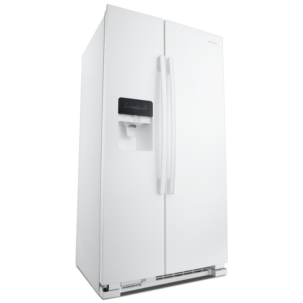 Our 33-inch Amana® Side-by-Side Refrigerator is great for smaller spaces, giving you the right amount of storage room. This 21 Cu. Ft. refrigerator with ice and water dispenser lets you grab fresh H2O with a Dual Pad Dispenser with EveryDrop™ Water Filter. Easily set temps with Electronic Temperature Controls. And big items fit in the Gallon Door Storage Bins.