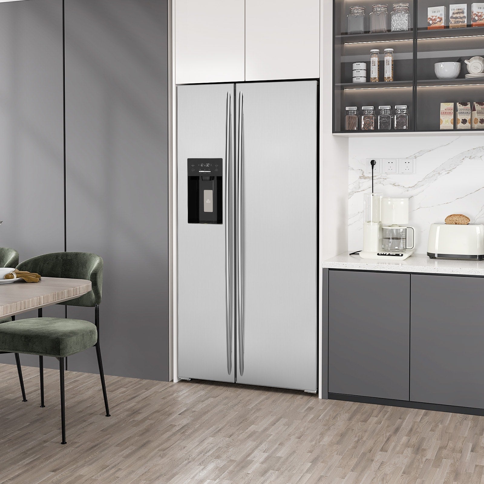 COWSAR 20.01-cu ft Counter-Depth Side-by-Side Refrigerator with Ice Maker ,Water and Ice Dispenser ( Silver )