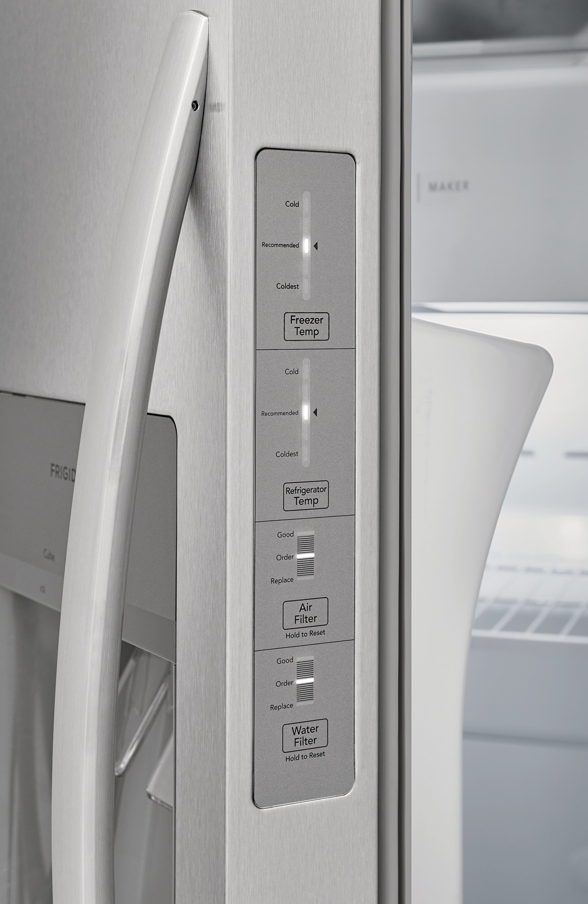 This Frigidaire 33-in side-by-side refrigerator offers our EvenTemp™ Cooling System which reacts quickly to temperature fluctuations and constantly circulates cold air throughout the fresh food and freezer compartments, ensuring a consistent cool from top to bottom. Keep fruits and vegetables fresh in our crispers that offer a seal to block out dry air. Find fresh foods quickly with our bright LED lighting.