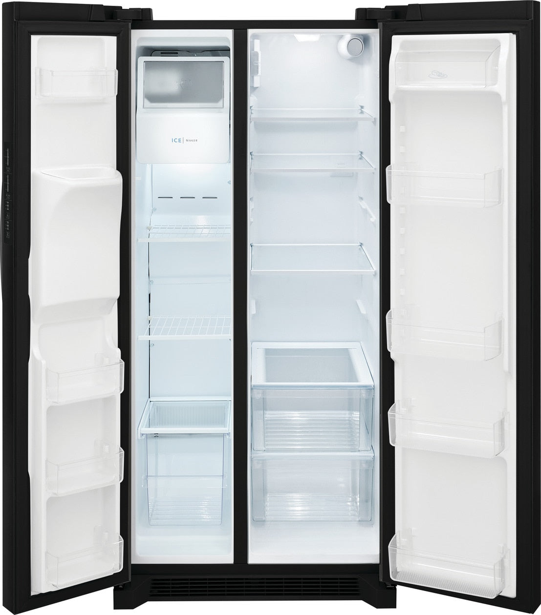 This Frigidaire 33-in side-by-side refrigerator offers our EvenTemp™ Cooling System which reacts quickly to temperature fluctuations and constantly circulates cold air throughout the fresh food and freezer compartments, ensuring a consistent cool from top to bottom. Keep fruits and vegetables fresh in our crispers that offer a seal to block out dry air. Find fresh foods quickly with our bright LED lighting.
