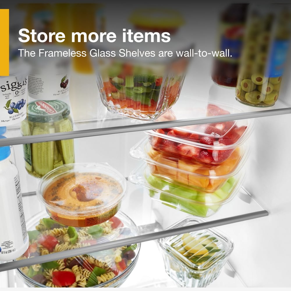 Glass Shelves are frameless and wall-to-wall, so you can store more items