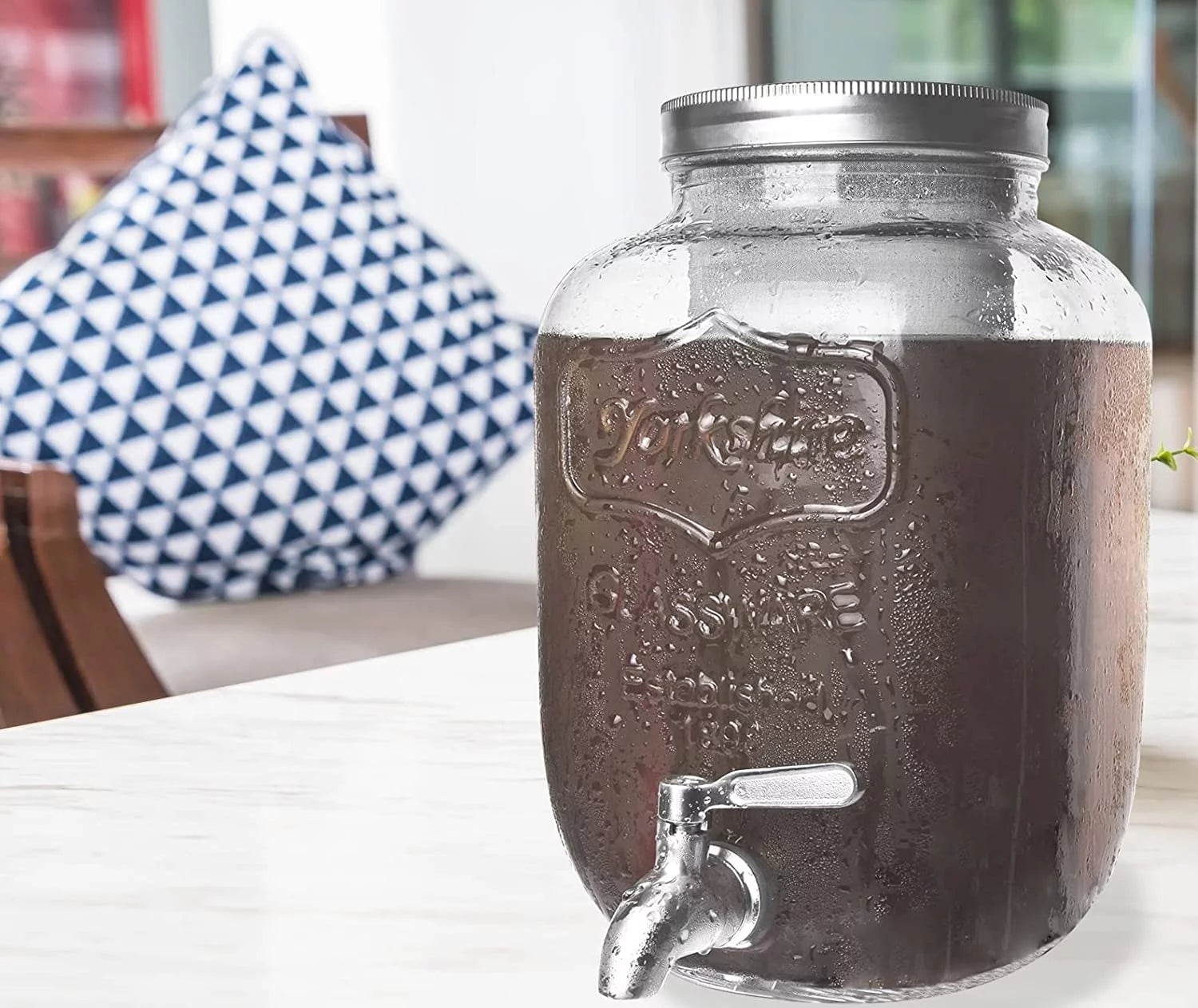 1 Gallon Cold Brew Coffee Maker with Thick Glass Carafe & Stainless Steel Mesh Filter and Spigot – Premium Iced Coffee Maker, Cold Brew Pitcher & Tea Infuser