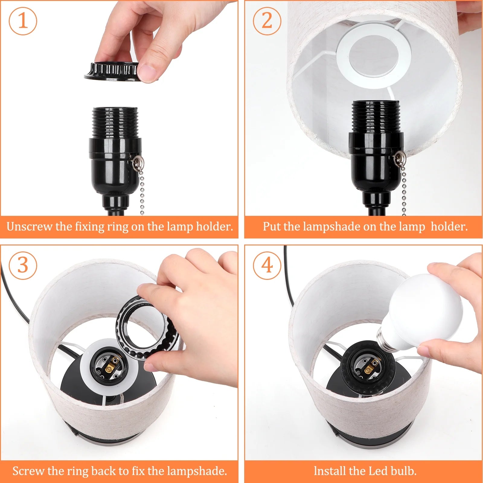 The metal base of the table lamp has been upgraded to resist rust and corrosion. The heavy base prevents it from tipping or shaking . and the thick pole design holds the lampshade securely without wobbling. In addition . the Linen fabric shade allows the lamp to emit a relaxing . cozy . even and soft light . creating a comfortable atmosphere and protecting your eyes and your kids’ eyes.