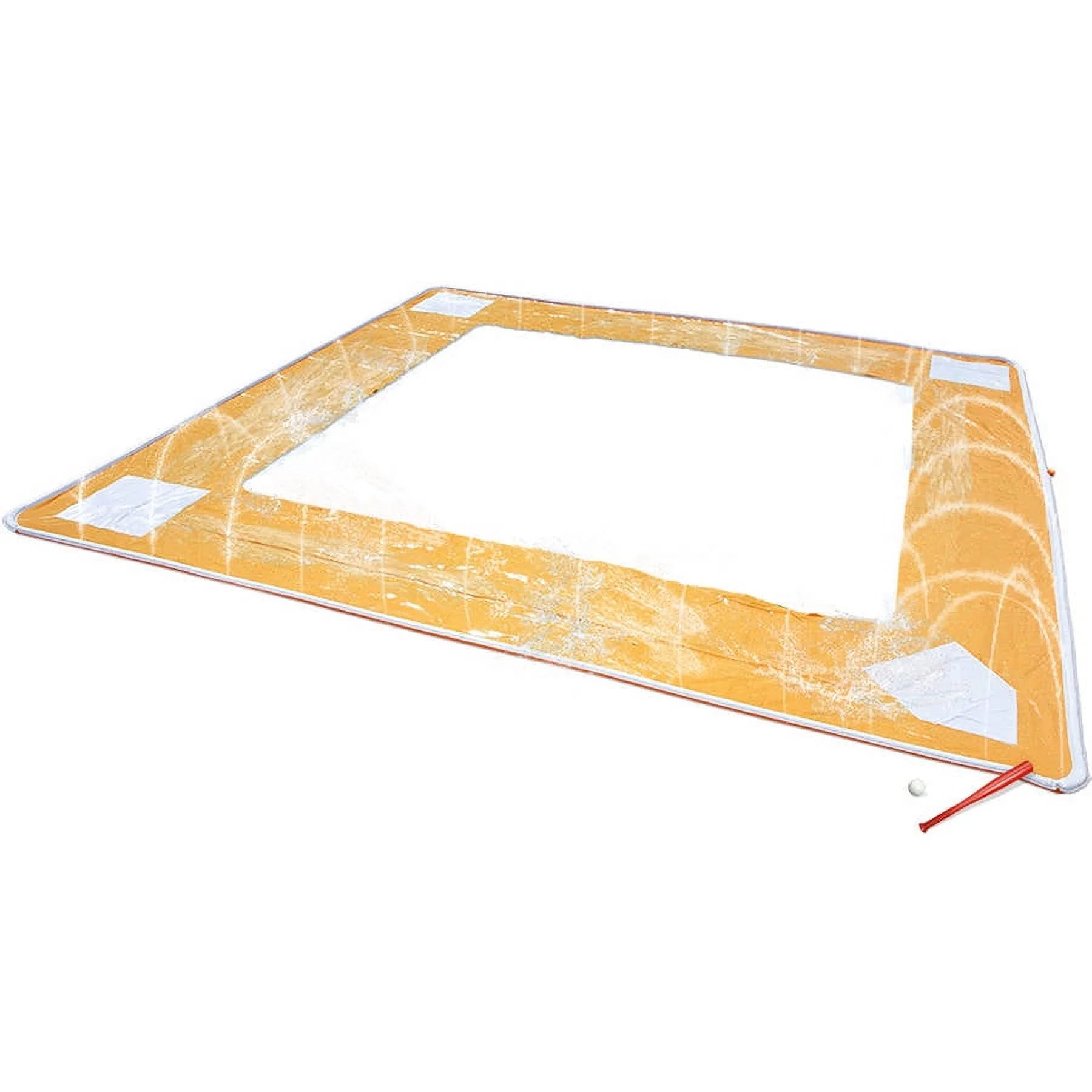 Bring two popular past times right to your back yard with this 14′ Grand Slam Baseball Slide. Recommended for ages 5 to 12 . it’s a whole new way for kids to play. The baseball diamond water slide has a refreshing water rail sprinkler that keeps the surface slick. Kids can take turns stepping up to bat and take a swing and as the ball goes flying . slide to each base and splash the basemen before they’re tagged out. The water slide is made with durable PVC construction . and it includes stakes for added stability. A baseball and bat are included.