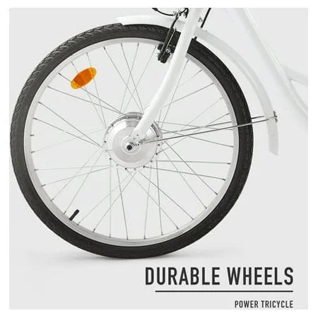 - 250W ELECTRIC MOTOR: The motor can drive this power trike up to 15.5 mph . be used to assist your exercise in hybrid mode . or turned off when you really want to stretch your legs; the battery offers a maximum range of 21.7 miles per charge