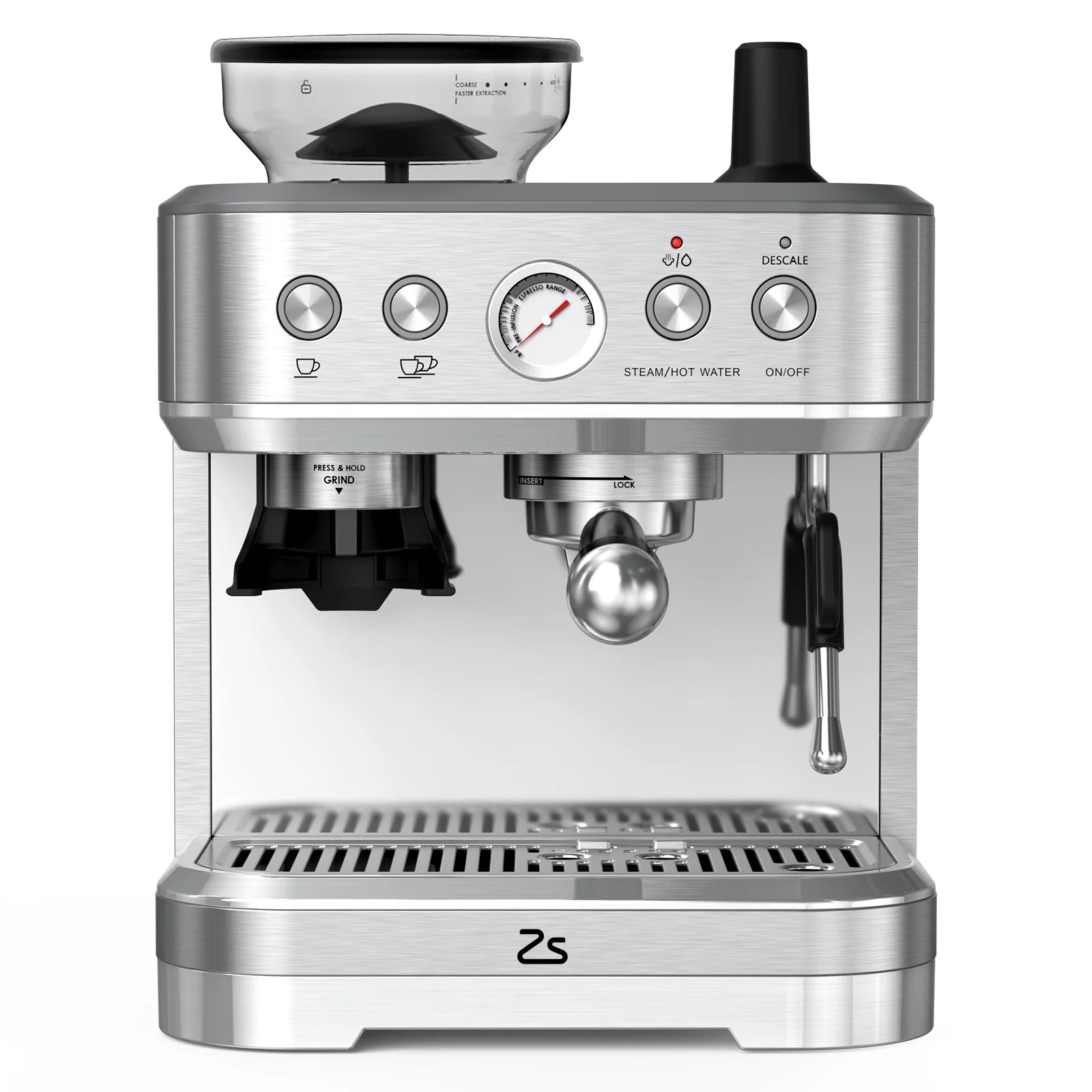 Zstar Express Espresso Machine . 15 Bar Espresso Coffee Machine Latte and Cappuccino Coffee Maker All in One Espresso Machine For Home Barista . Brushed Stainless Steel