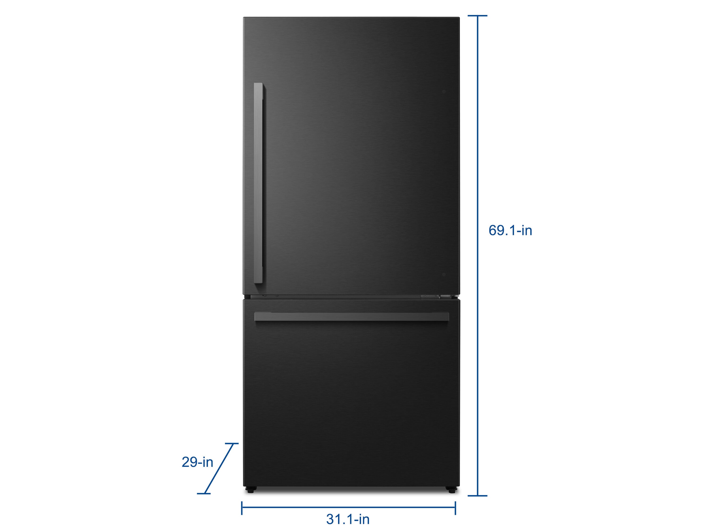 With its modern clean design, the Hisense HRB171N6ABE is slim enough to fit 33" width spaces and give any kitchen a more premium look. The counter-depth design provides a sleek built-in feel. Gallon door storage keeps frequently used items within easy reach. LED lighting helps you find what you're looking for. Two full-width freezer drawers make it easy to organize food.