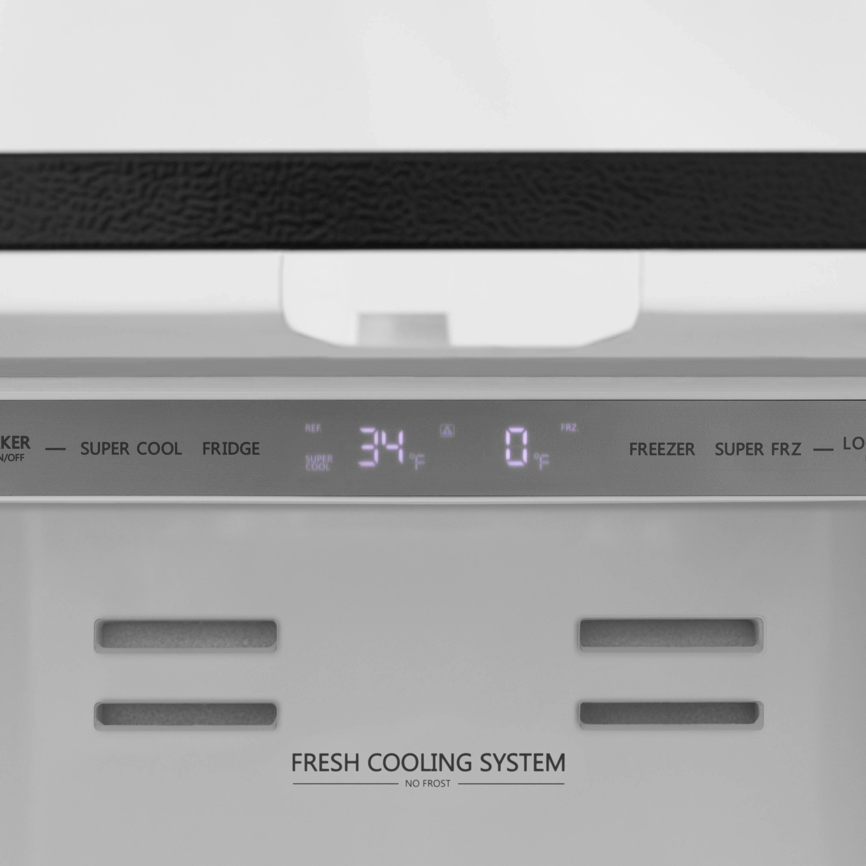 • Super Cool and Super Freeze Modes - Save time and quickly chill food with unique functions that automatically set the fridge temperature to 34°F and freezer to -7°F